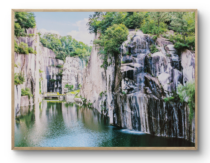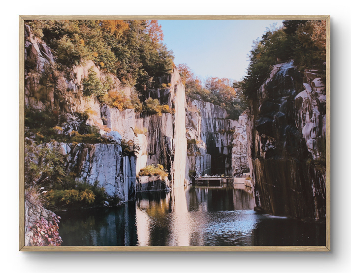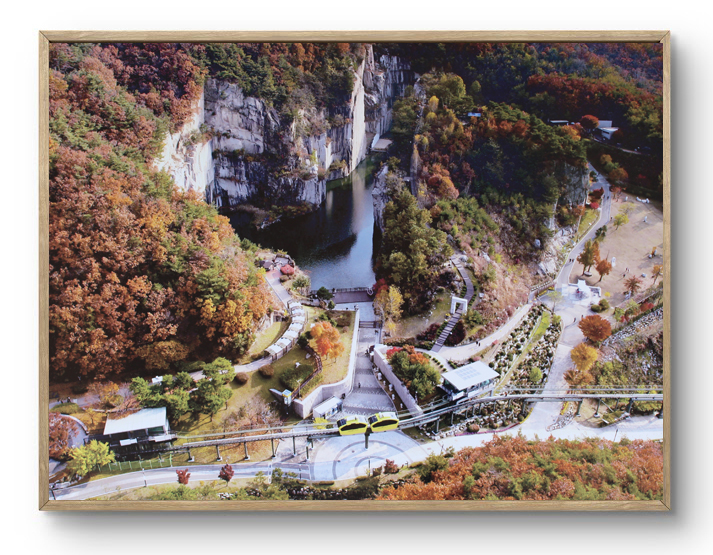 사진 속 천주호는 화강암을 채석하며 파들어갔던 웅덩이에 샘물과 빗물이 유입되어 만들어진 1급수 호수입니다. 수심 20미터의 맑은 물속엔 가재와 도롱뇽, 피라미가 살고 있다고 해요. 인간이 남긴 상처를 자연이 스스로 치유한 기적 같은 풍경이죠.