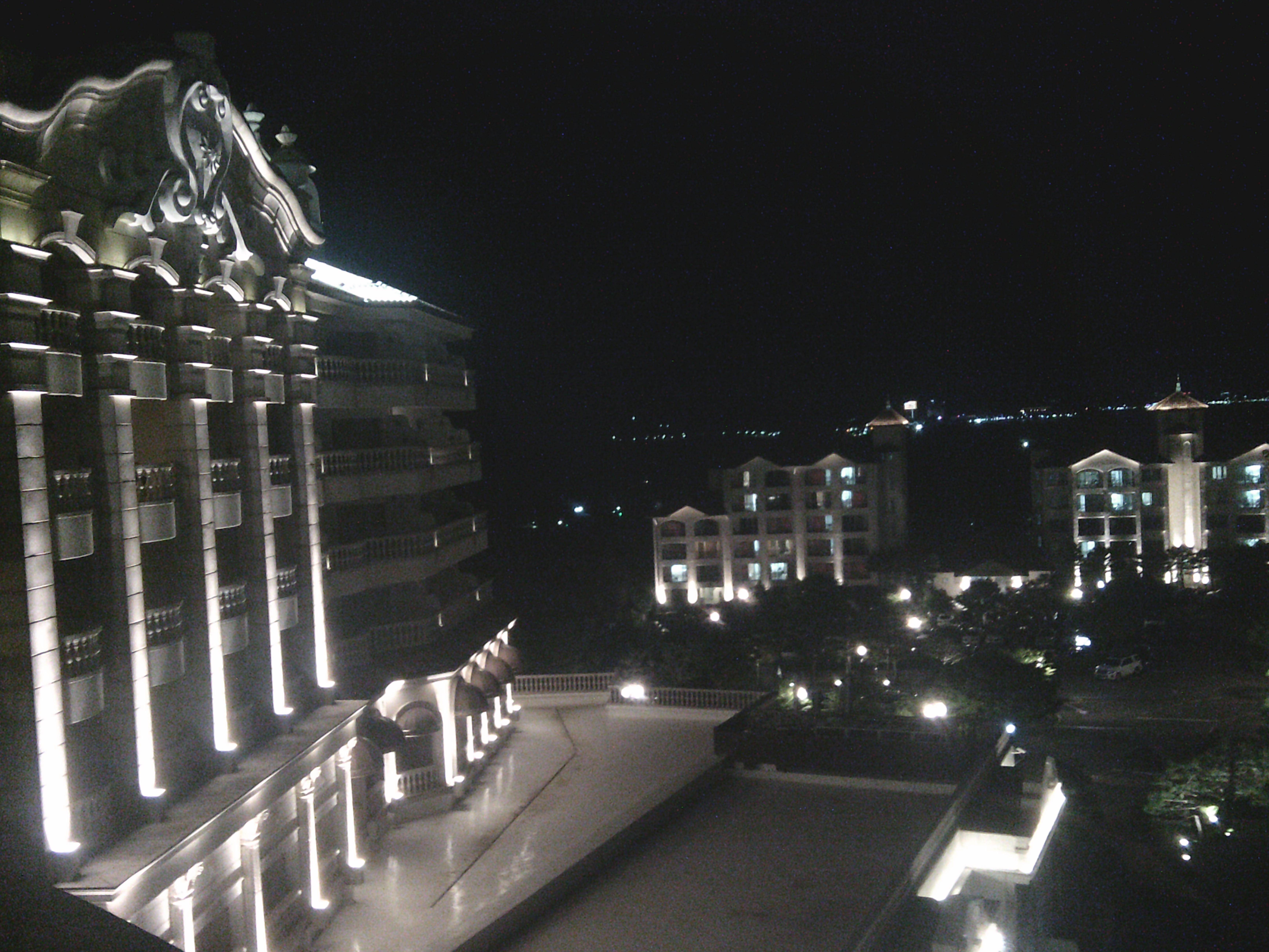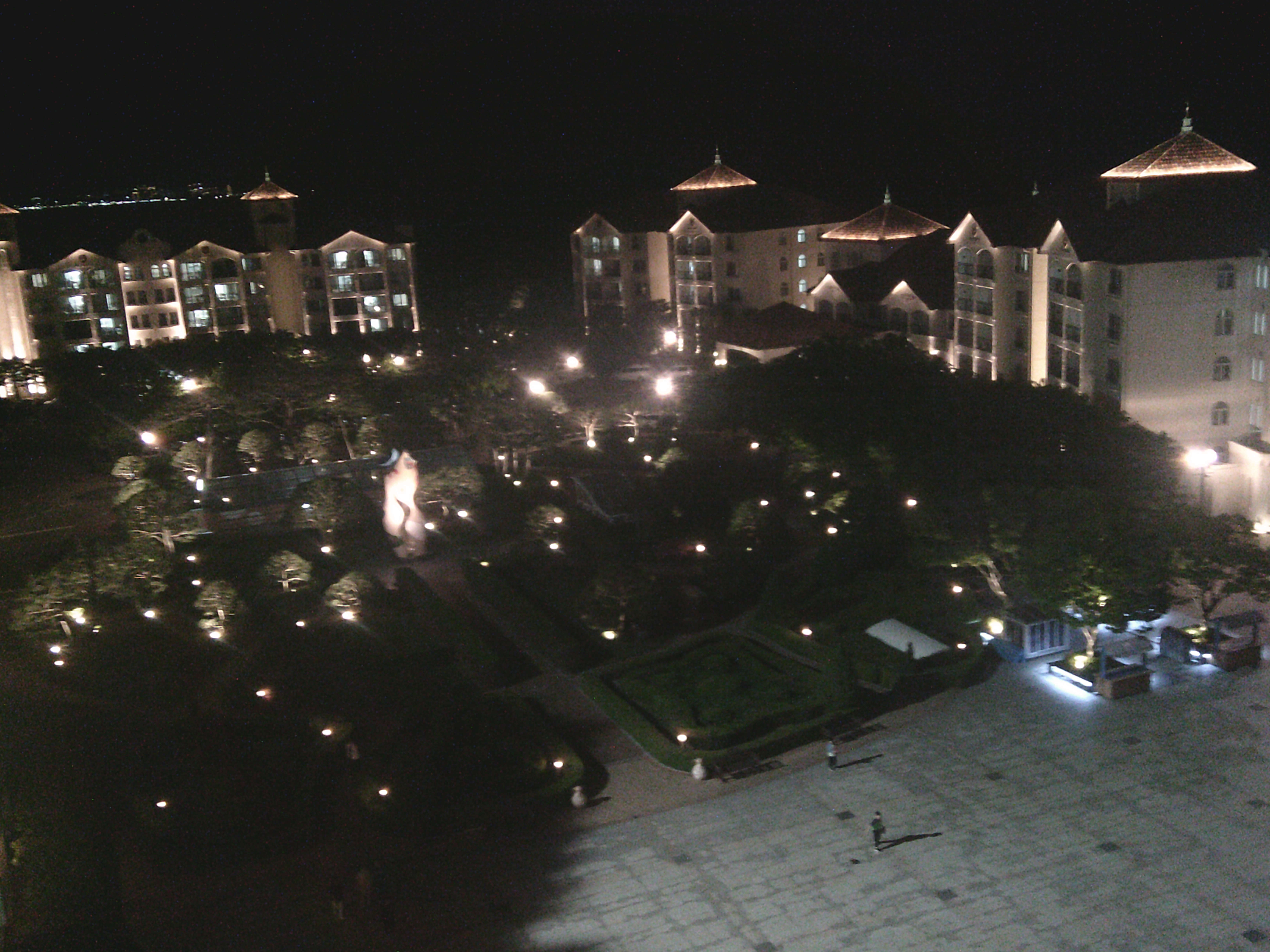 수영장을 감싼 파란 조명, 호텔 타워를 환하게 밝힌 서치라이트, 곳곳에 박힌 작은 불빛들이 정원과 나무를 은은하게 비추는 풍경. 창문 너머로 바라본 야경은 마치 유럽의 작은 리조트 마을 같았다. 잠들기가 아까울 정도였다.