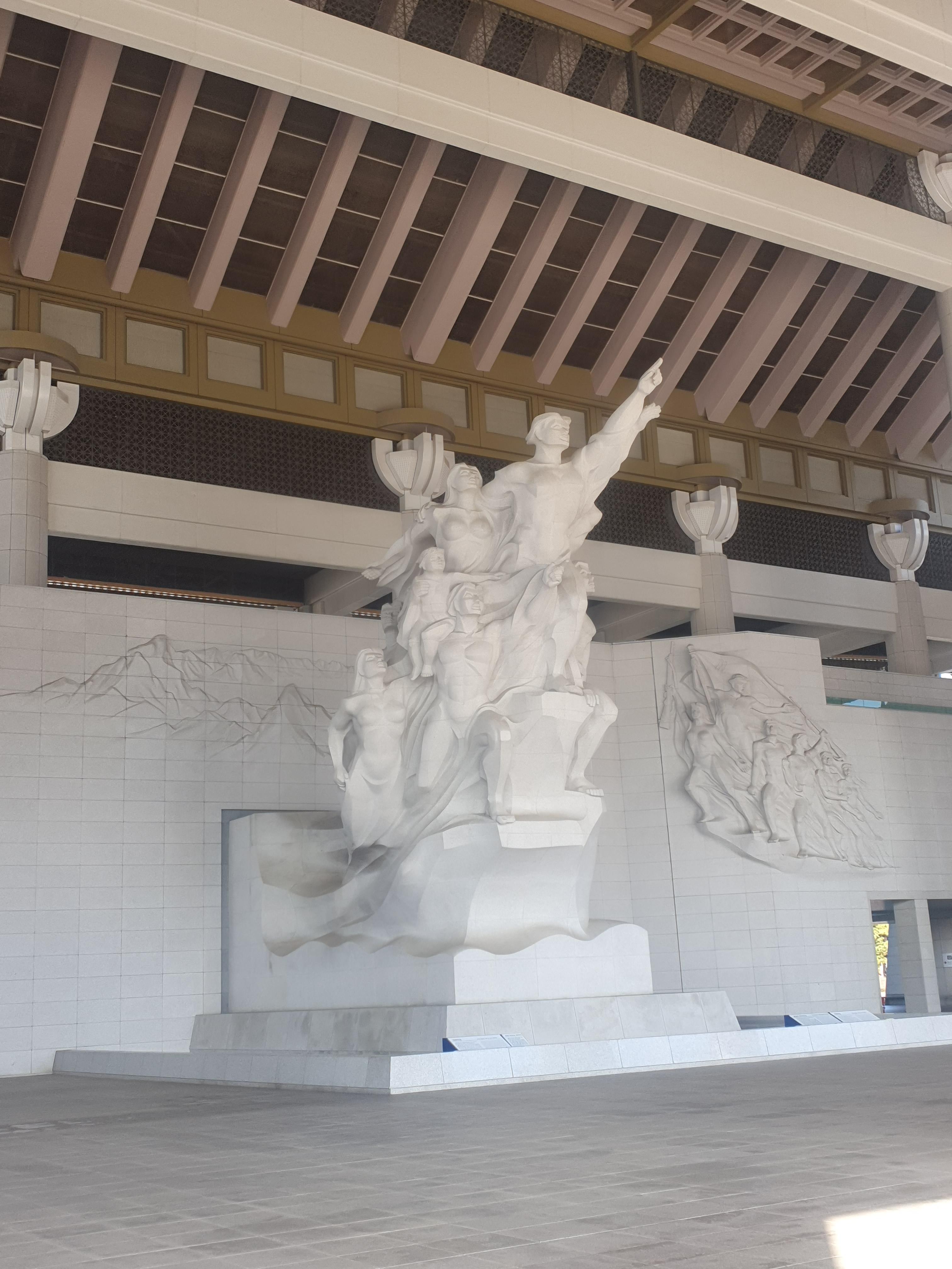 입구 위엔 힘찬 군상 조각이 새겨져 있다