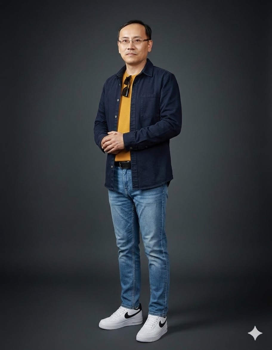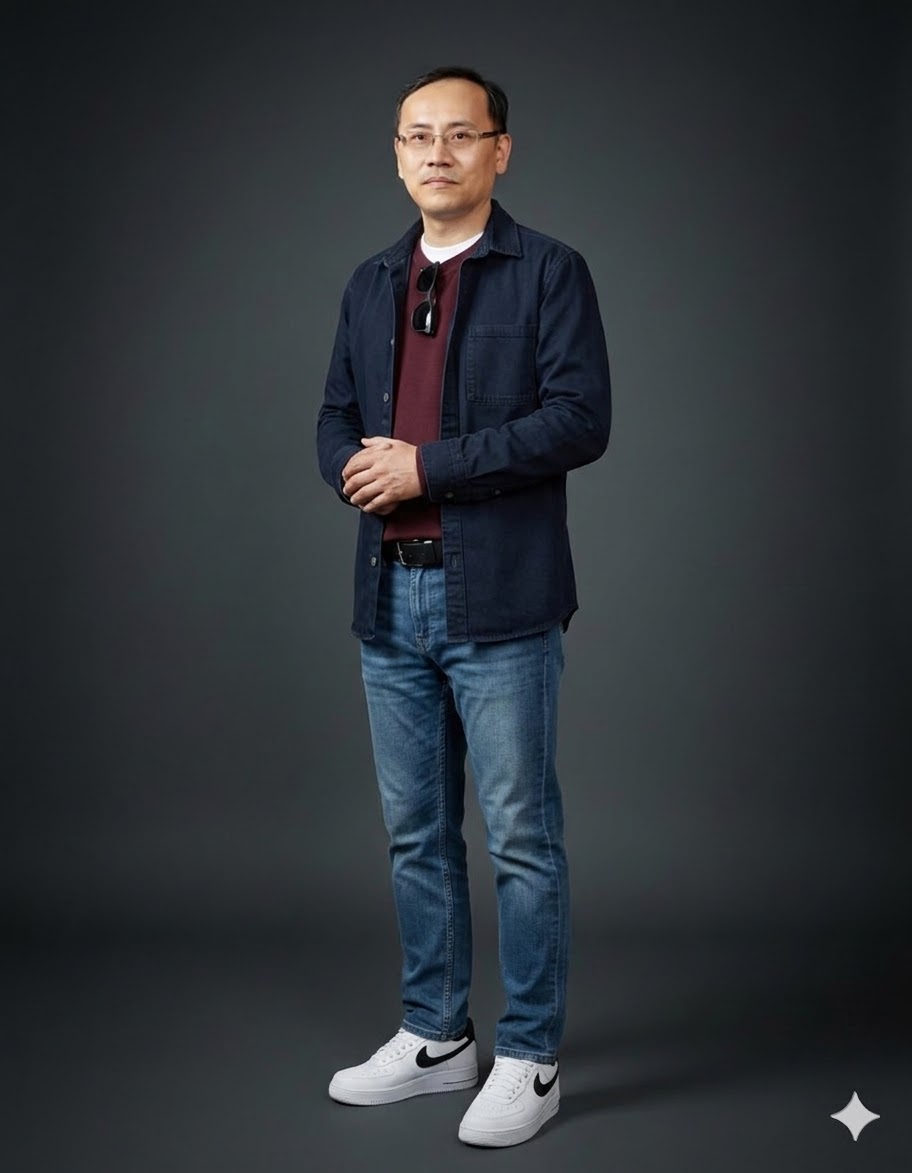 화이트 스니커즈는 전체 룩에 경쾌함을 더하고, 손목 위 시계 하나가 시간의 흐름을 기꺼이 즐기겠다는 의지를 담습니다. 꾸민 듯 안 꾸민 듯 이 미묘한 균형이 캐주얼의 품격입니다.