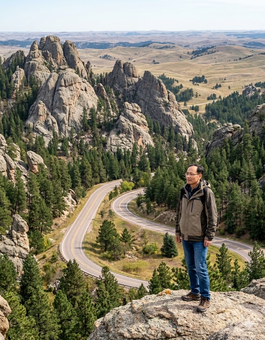 사우스다코타의 블랙힐스 한가운데, 굽이굽이 이어진 도로를 따라 올라가다 보면 어느 순간 숨이 턱 막히는 풍경이 펼쳐진다. 회색 화강암 봉우리들이 하늘을 찌를 듯 솟아 있고, 그 아래로는 황금빛 초원이 끝없이 펼쳐진다. 커스터 주립공원이다.