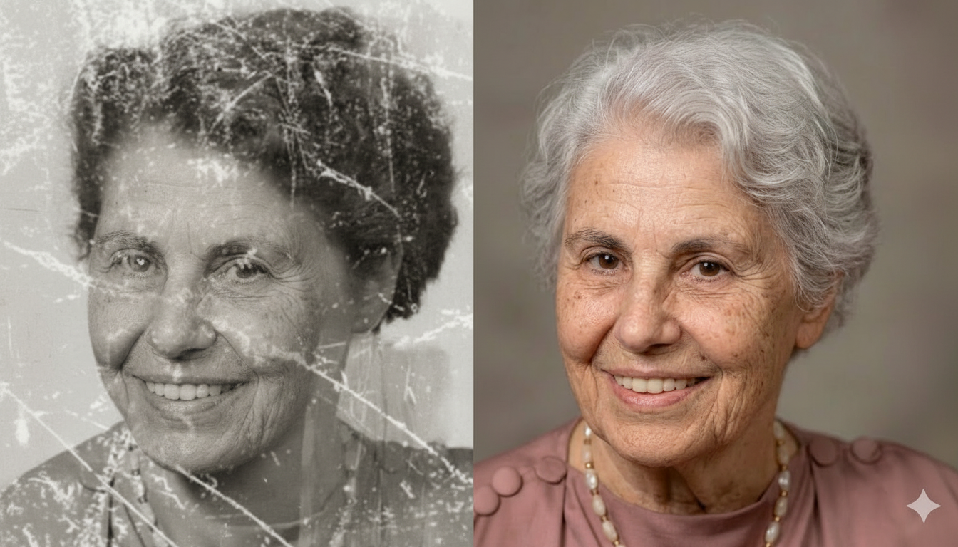 오래된 흑백 사진을 컬러화하고 복원하세요. 현대적이고 선명한 사진으로 바꿔드립니다. 자연스럽고 사실적인 색감을 더하고, 얼굴 디테일을 살리고, 스크래치, 먼지, 흐릿함을 제거합니다. 높은 다이내믹 레인지, 선명한 초점, 4K 해상도, 전문 스튜디오급 품질을 제공합니다. 원본 얼굴과 신원은 그대로 유지합니다.
