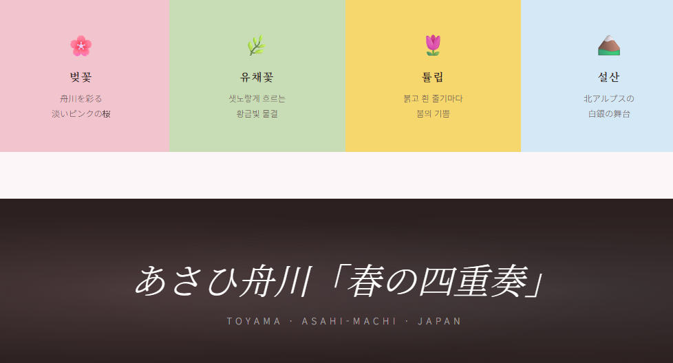 세상에는 단 한 번, 모든 것이 완벽하게 맞아떨어지는 순간이 있다. 하얗게 쌓인 설산 아래 벚꽃이 만개하고, 그 앞에는 샛노란 유채꽃밭이 물결치며, 강물이 조용히 그 사이를 흐르는 풍경 일본 도야마현 아사히마치의 舟川べりの桜並木는 그런 기적 같은 계절의 교향악을 해마다 연주한다.