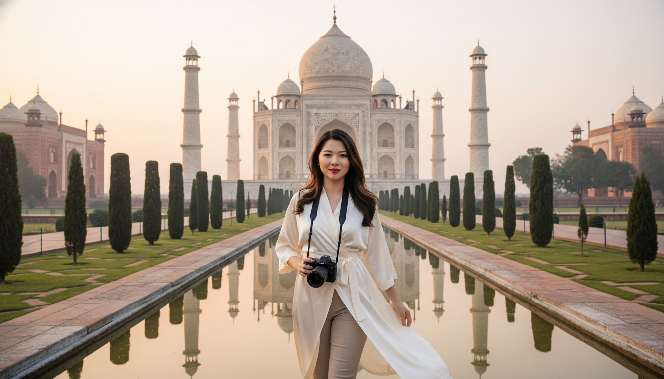 이른 새벽, 반영지 위로 완벽하게 뒤집힌 타지마할의 모습을 보는 순간 숨이 멎었다. 이 하얀 대리석 궁전은 무굴 황제 샤 자한이 사랑하는 아내 뭄타즈 마할을 위해 지은 영원한 사랑의 증표다.