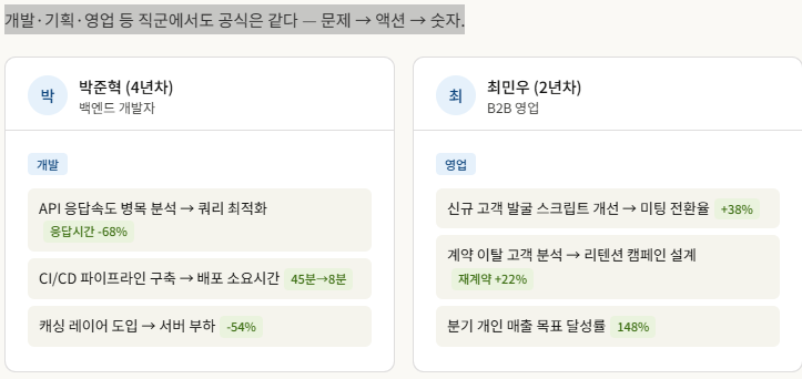 개발·기획·영업 등 직군에서도 공식은 같다. 문제 → 액션 → 숫자.