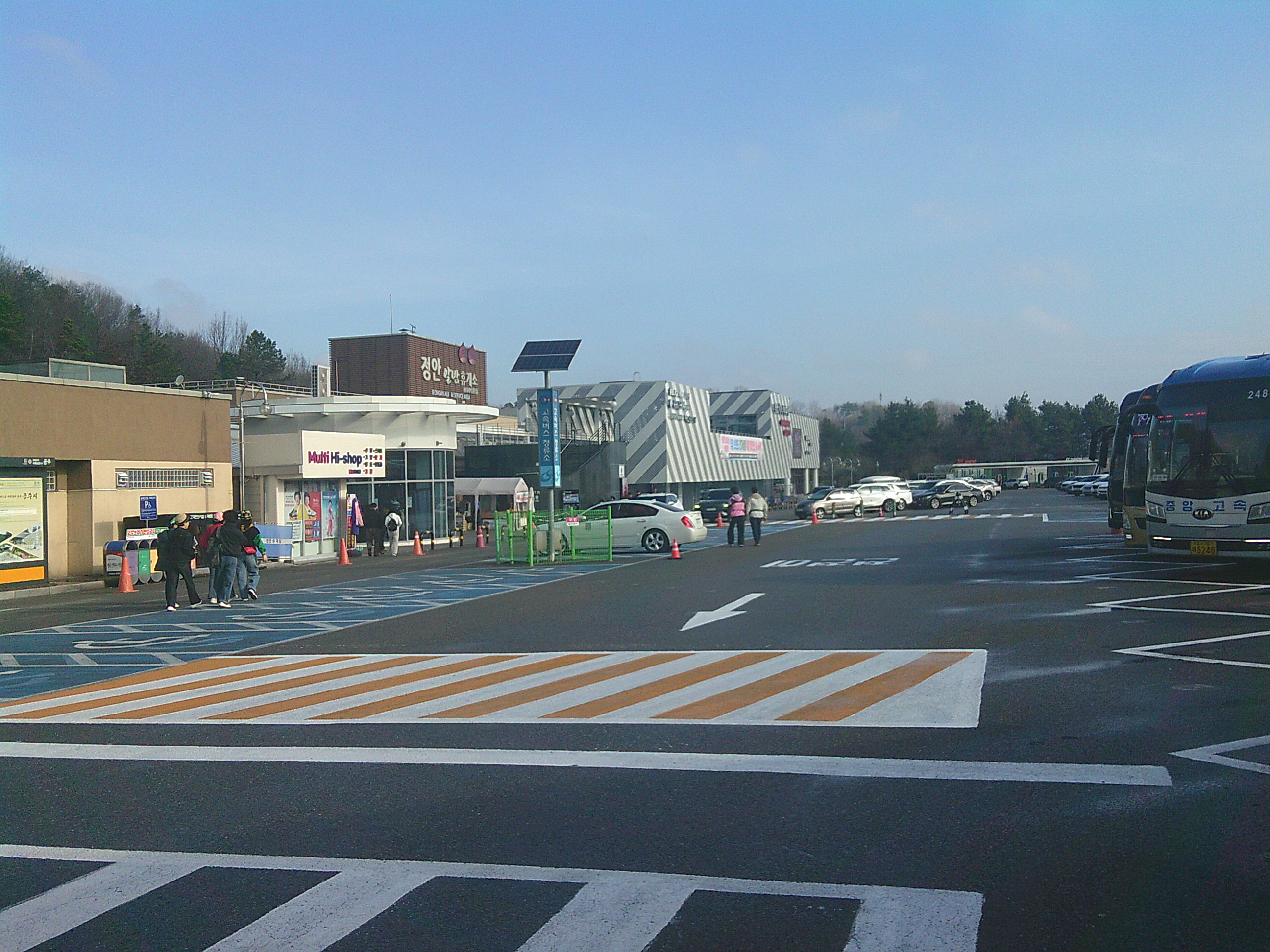 정안휴게소 간판 뒤로 파란 하늘이 넓게 펼쳐졌다. 봄이 우리보다 먼저 와 있었다.