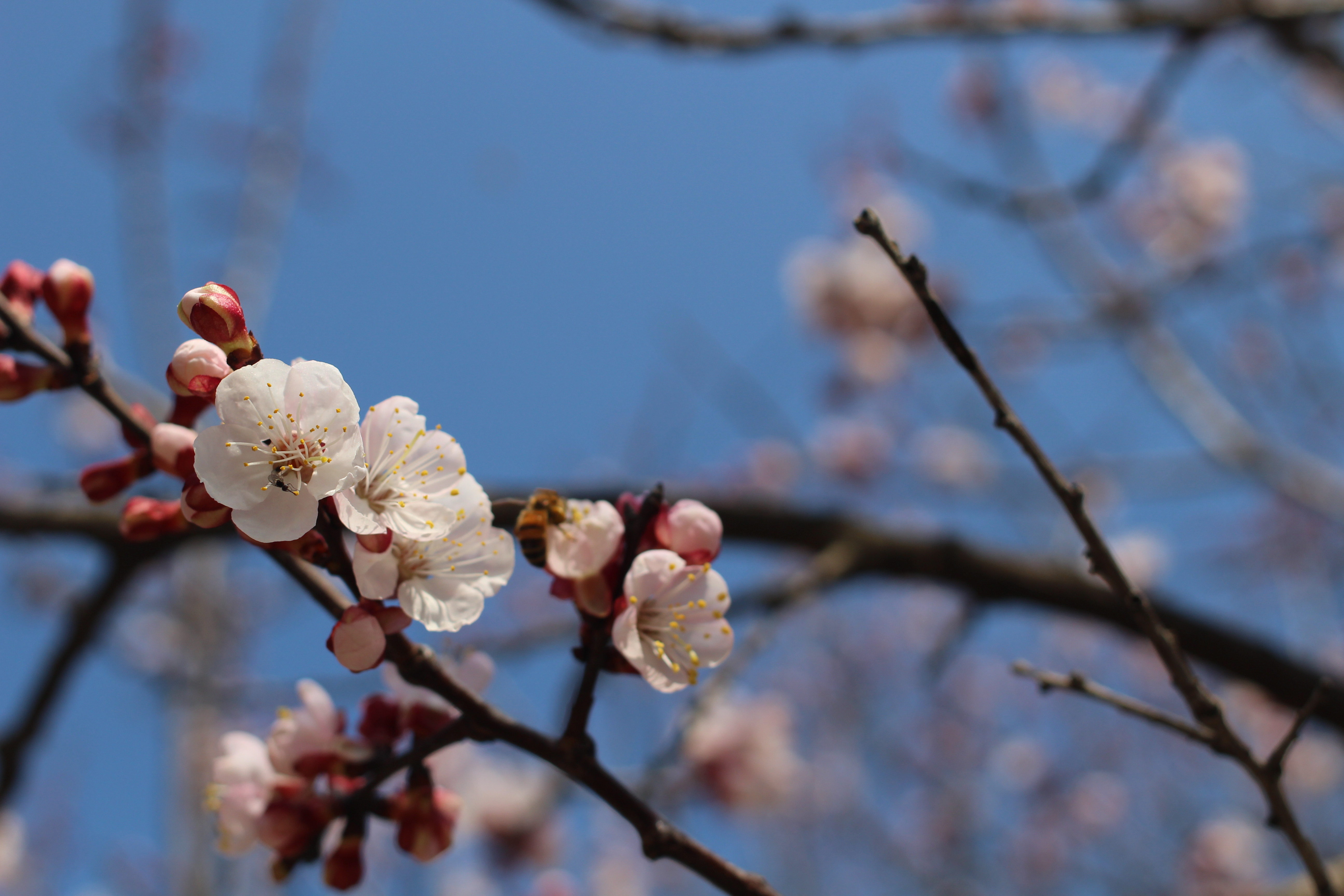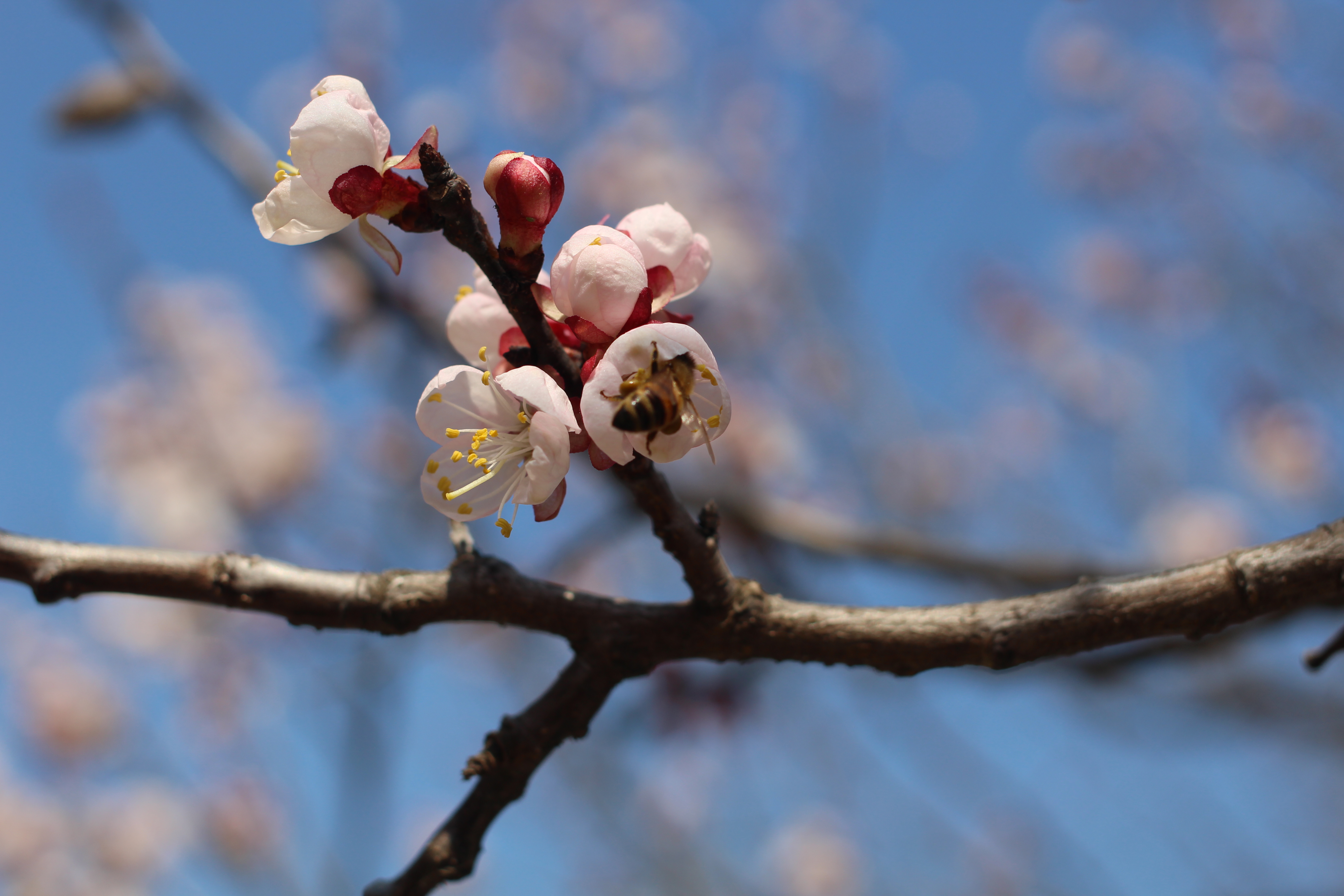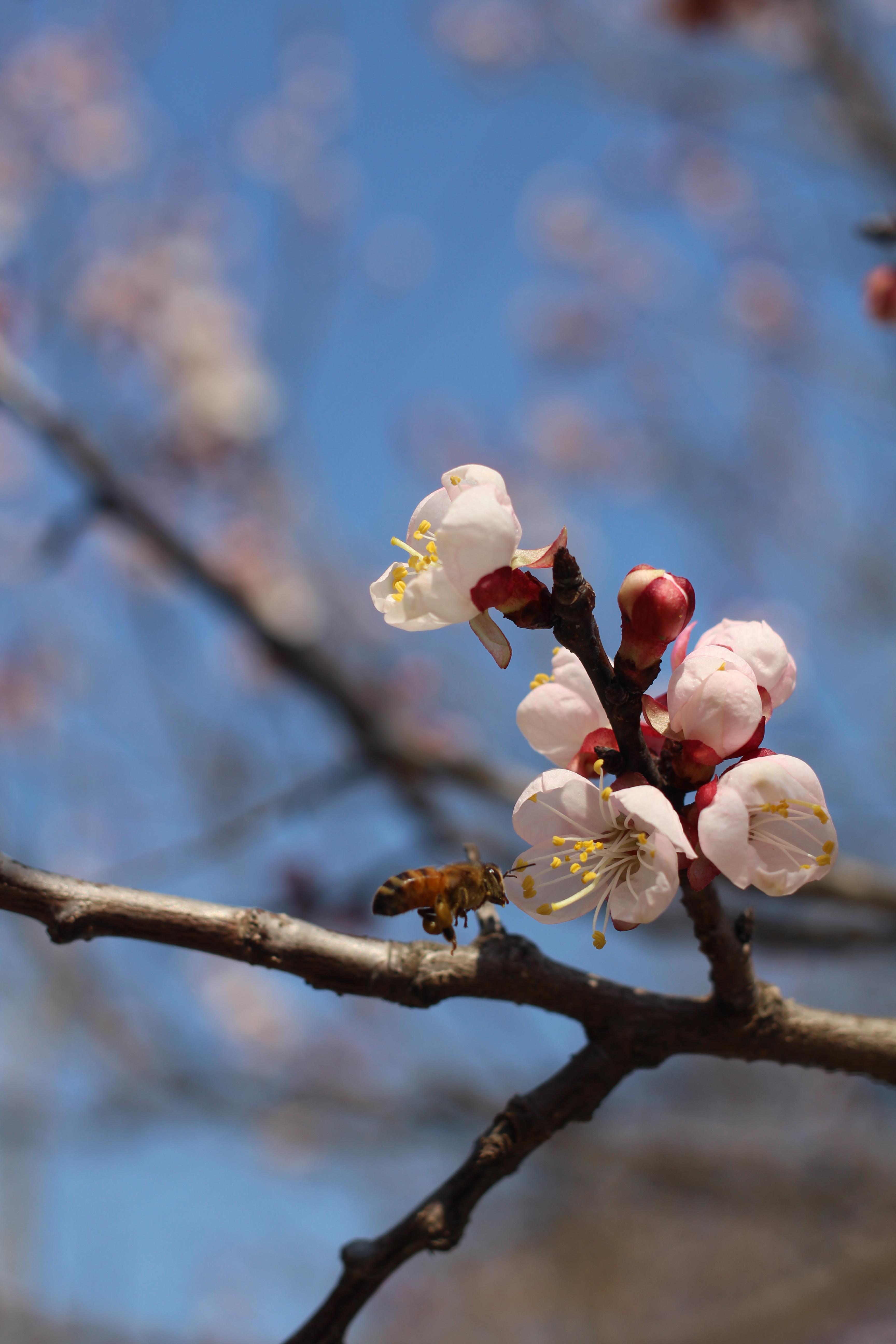 살구꽃이 만개하자 가장 먼저 반응한 것은 꿀벌이었습니다. 이른 봄, 아직 다른 꽃들이 많지 않을 때 살구꽃의 달콤한 향기는 꿀벌들에게 더없이 귀한 식탁입니다. 벌 한 마리가 꽃술에 내려앉는 순간, 저는 숨을 죽이고 셔터를 눌렀습니다.