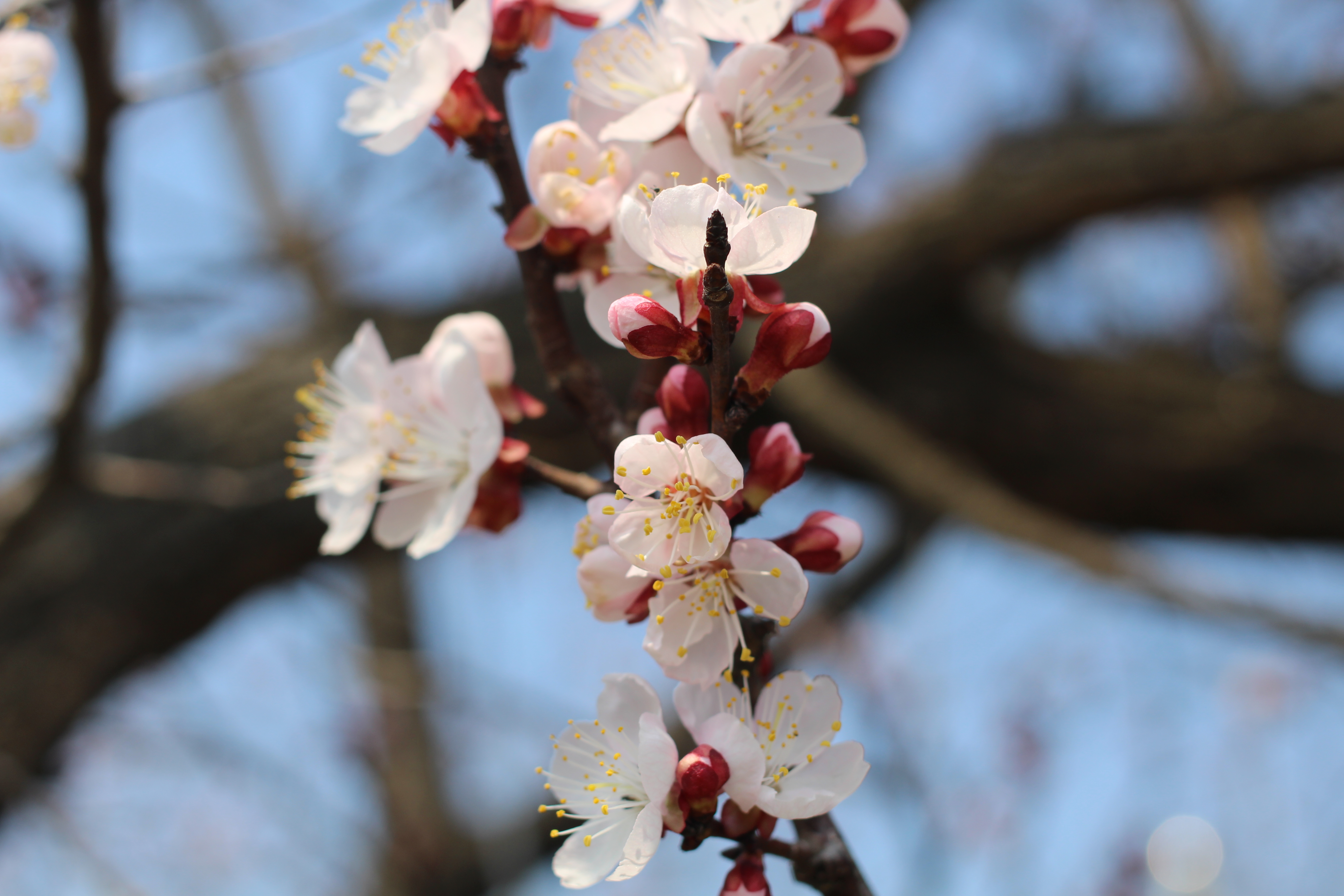 꽃잎 안쪽에는 연한 분홍빛이 감돌고, 바깥쪽 꽃받침은 짙은 붉은색입니다. 이 대비가 살구꽃을 다른 봄꽃과 구별짓는 특별한 아름다움입니다. 벚꽃보다 이르고, 매화보다 따뜻하며, 복숭아꽃보다 소박한 꽃.