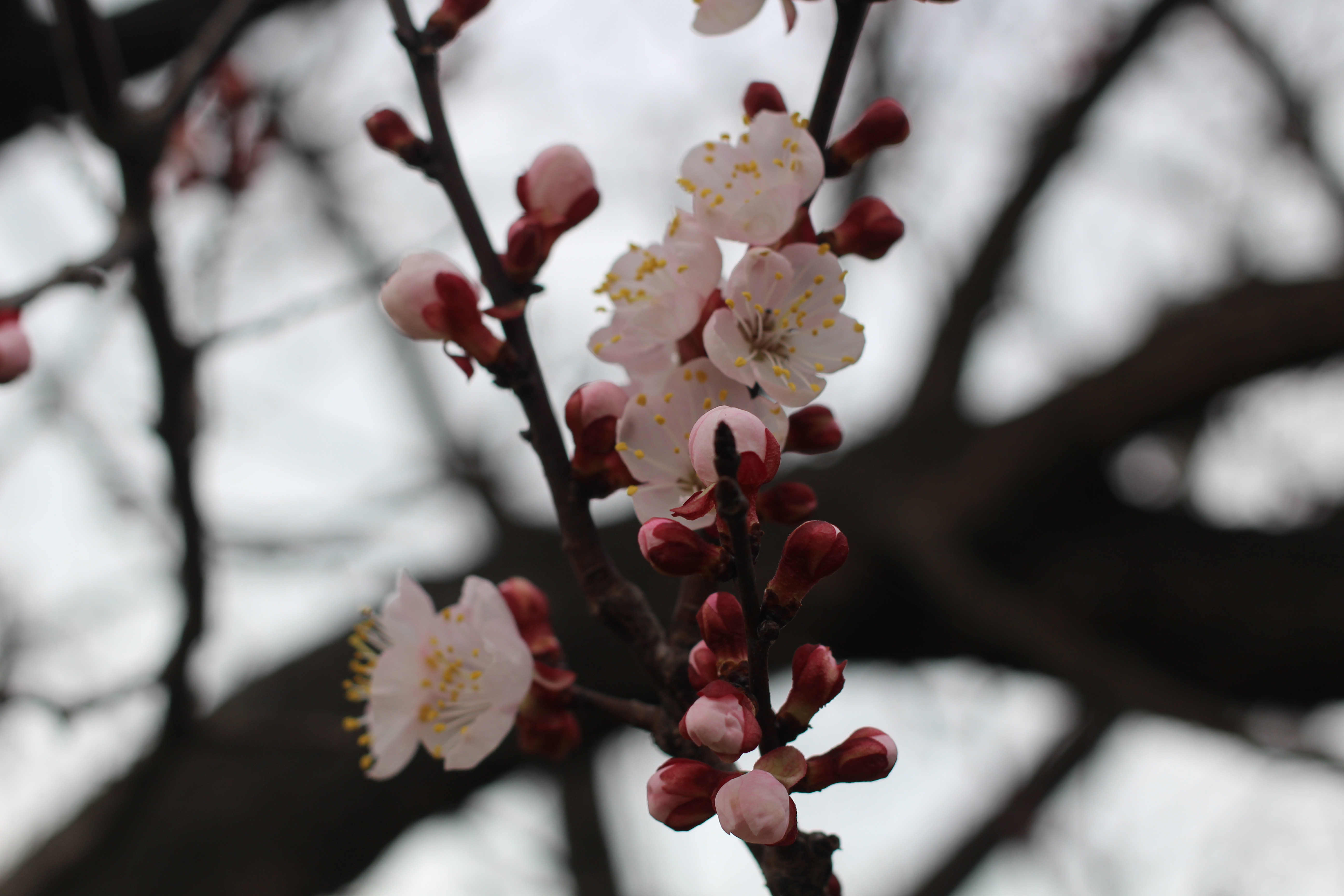 겨울을 견딘 가지 끝에 짙은 붉은빛 꽃망울이 맺힙니다. 아직 꽃잎은 보이지 않지만 그 안에 모든 봄이 웅크리고 있습니다.