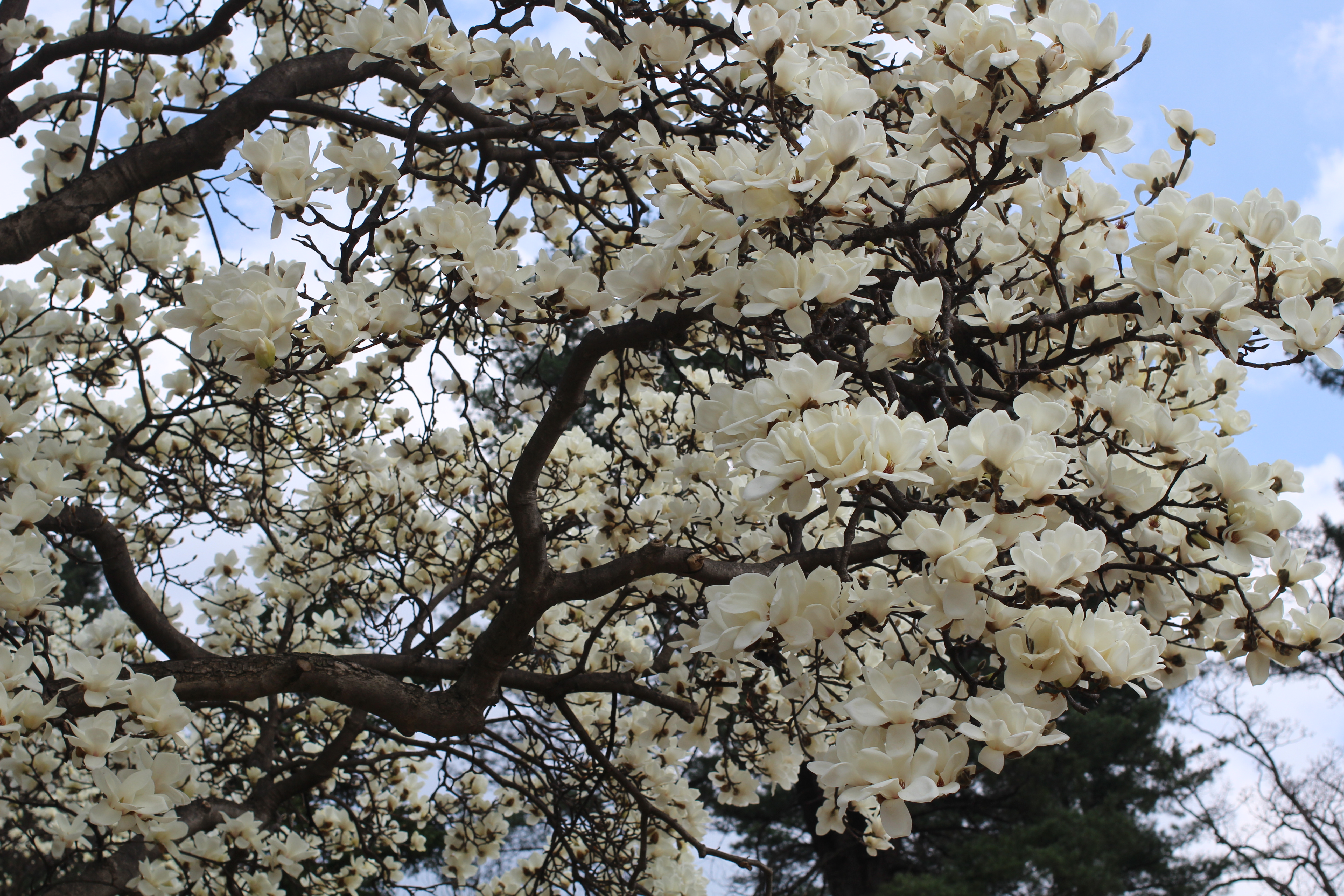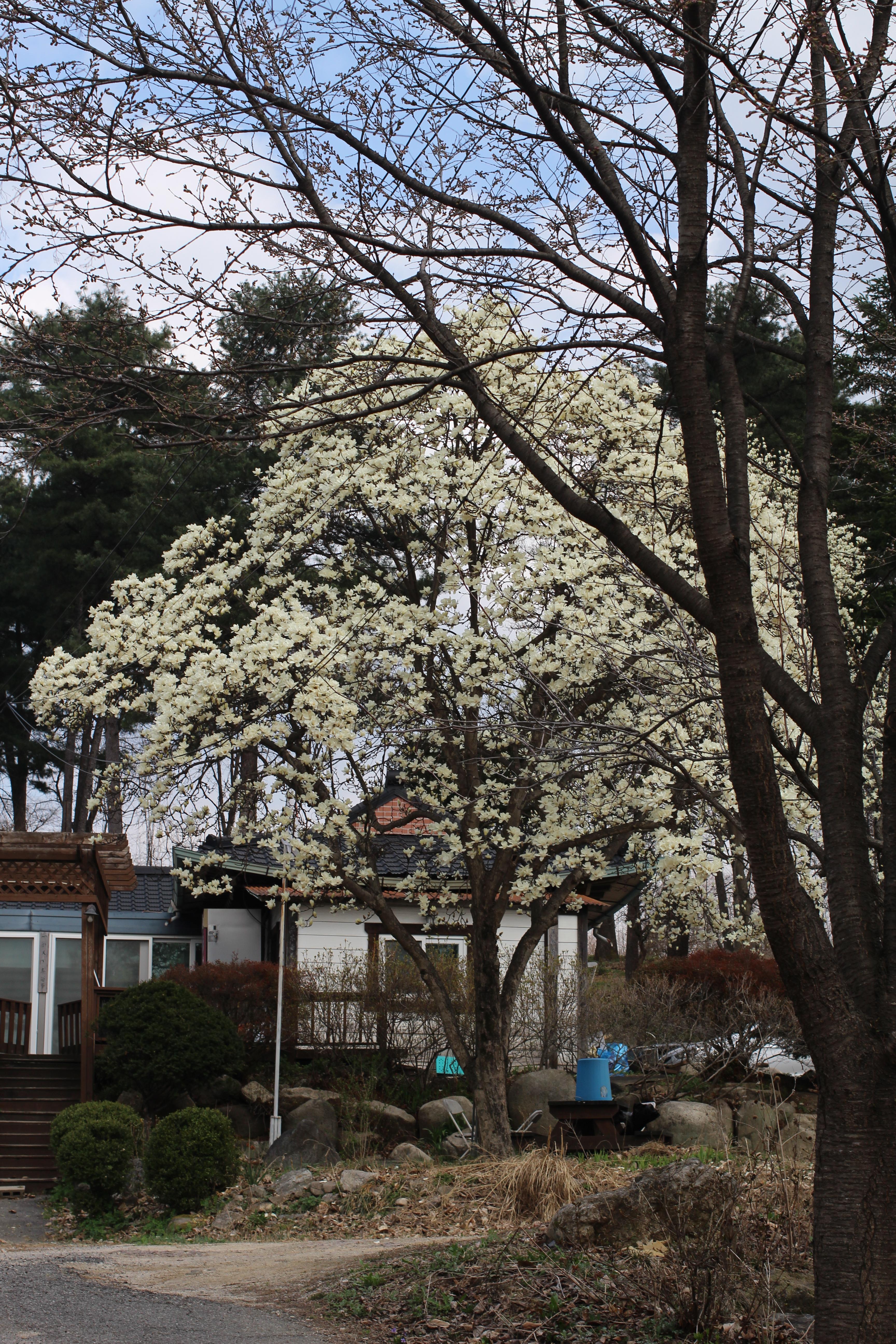걷다가 발을 멈추게 하는 나무가 있다. 백목련이었다. 아직 잎 하나 없는 가지에, 크림빛 꽃들이 하늘을 향해 잔뜩 벌려져 있었다. 올려다보고 있으면 하늘과 꽃이 구분이 안 된다.