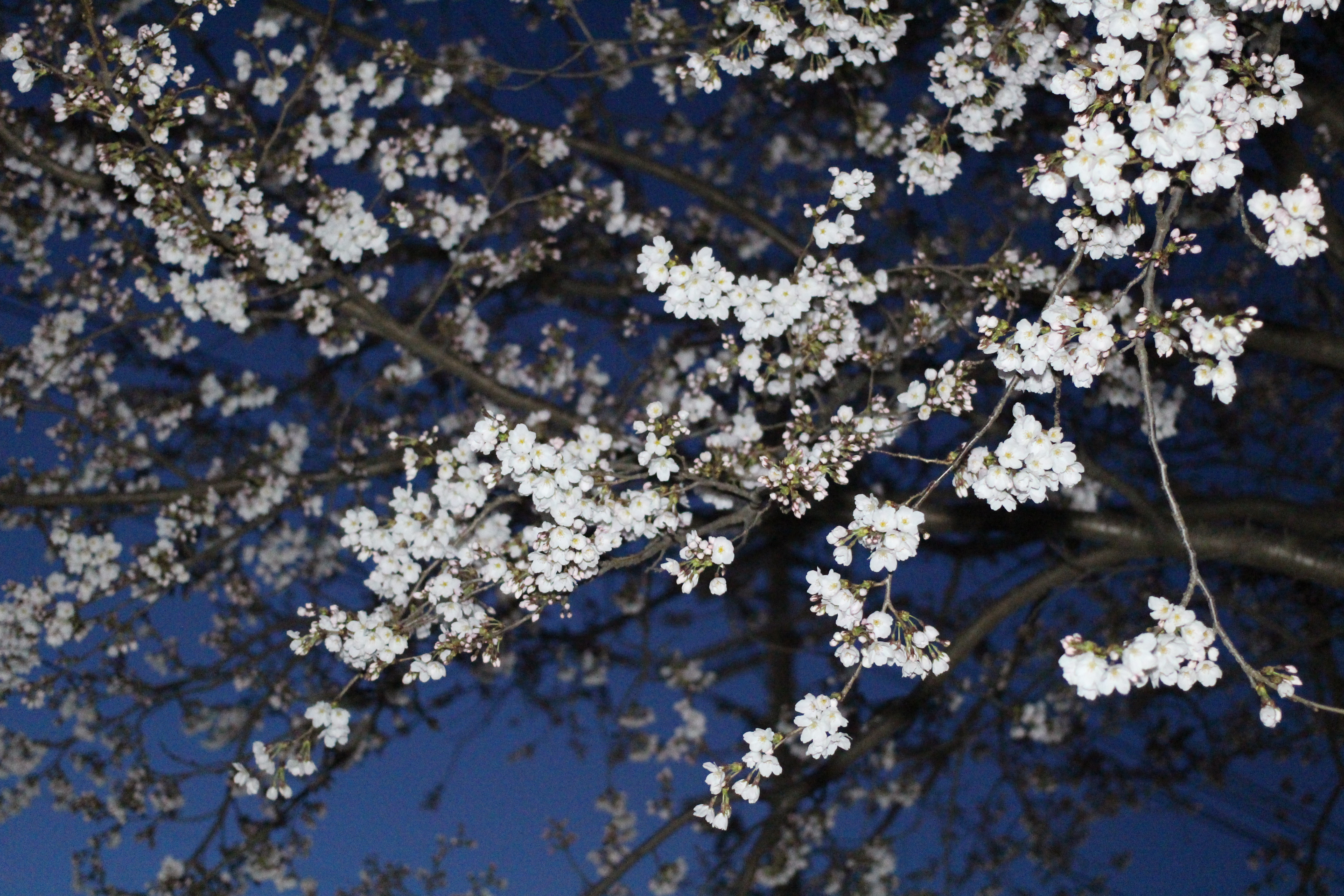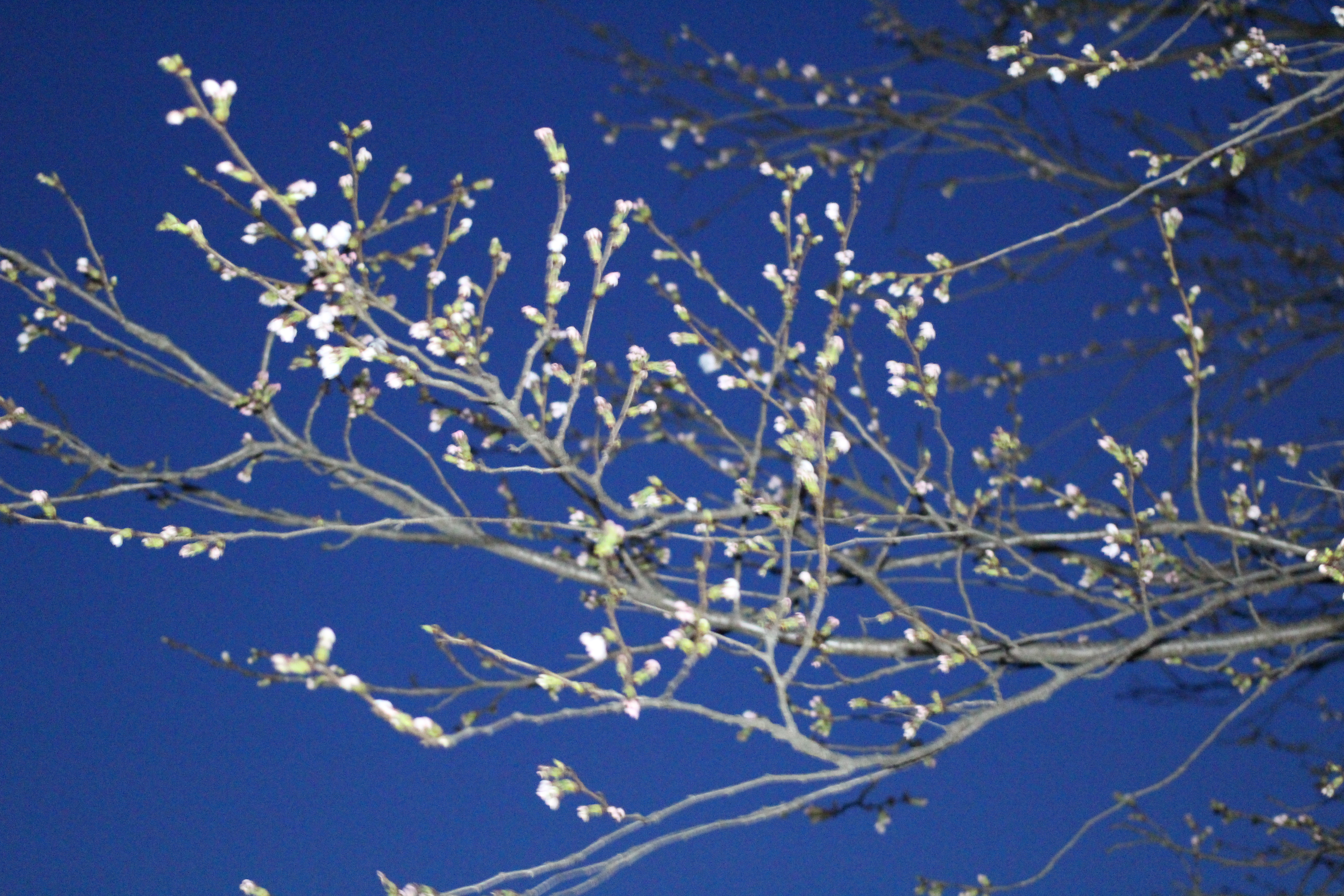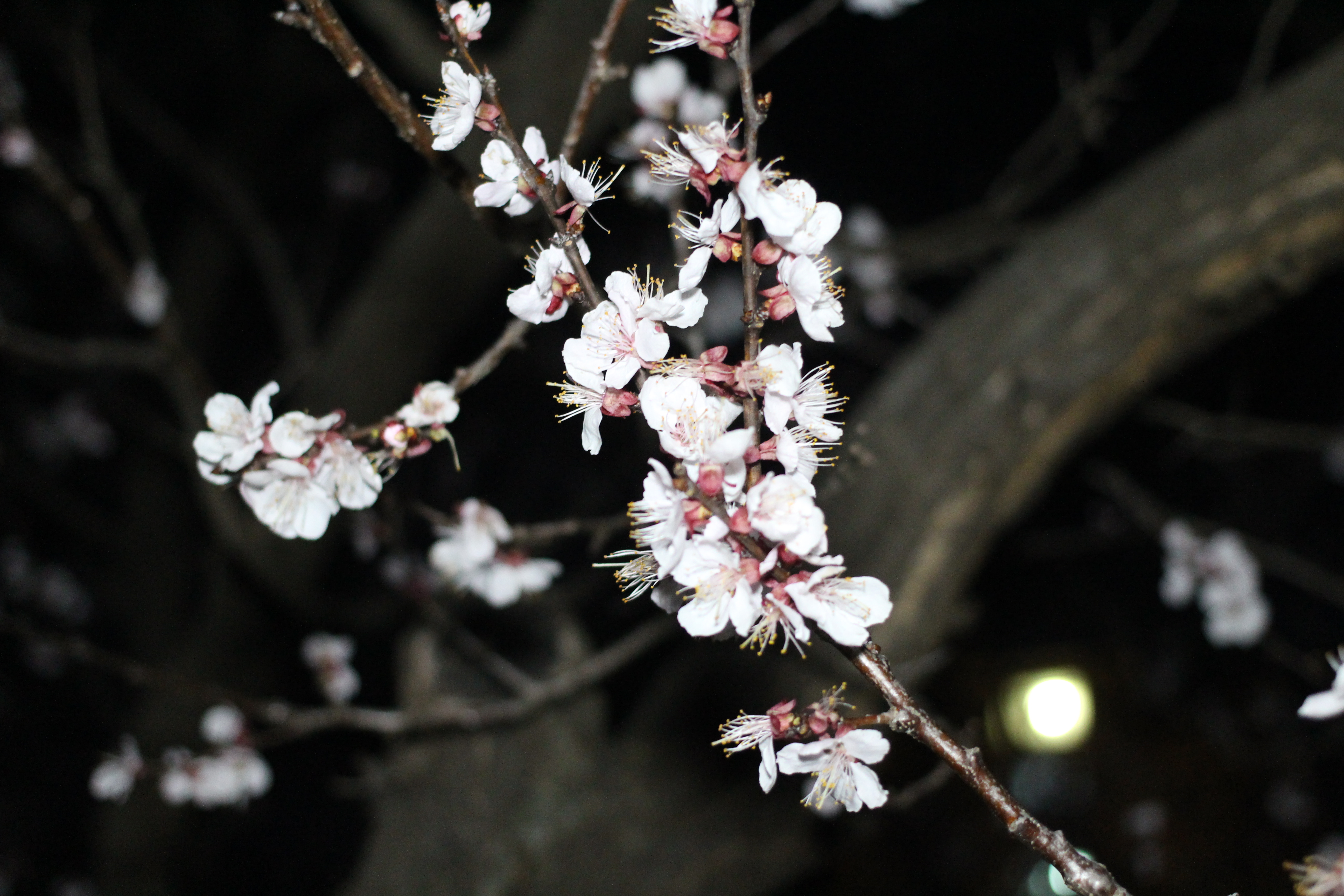 벚꽃보다 먼저, 살구꽃이 핀다. 연분홍 꽃받침 위로 새하얀 다섯 장의 꽃잎, 그리고 노란 수술들이 수줍게 고개를 내밀고 있었다. 밤하늘의 짙은 파란색이 배경이 되어 꽃들이 더욱 선명하게 빛났다.