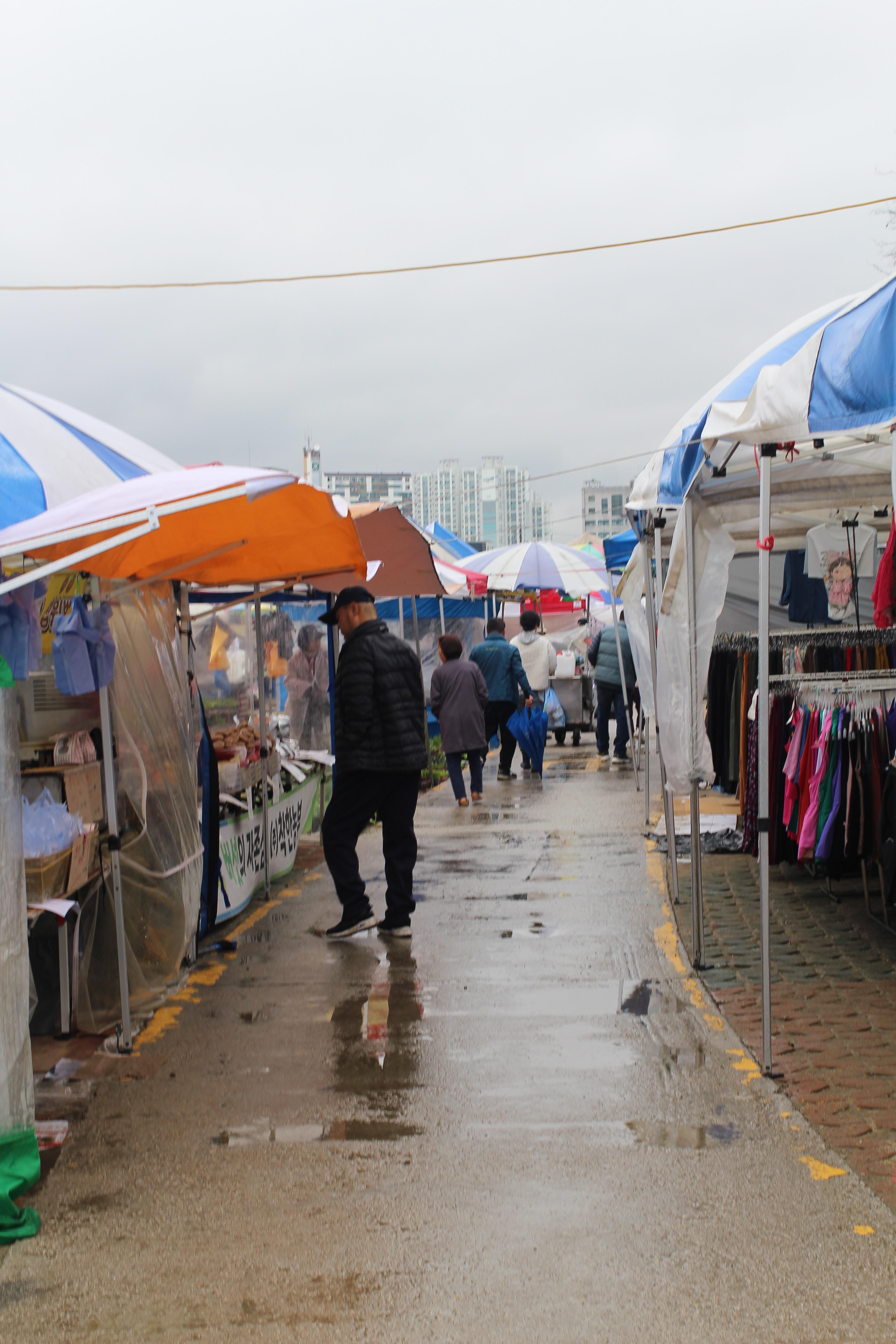 장 안은 비에도 불구하고 나름 활기찼다. 옷가지, 신발, 생활용품들 사이로 사람들이 우산을 접었다 폈다 하며 구경했다. 빗속에서도 흥정은 계속됐다.