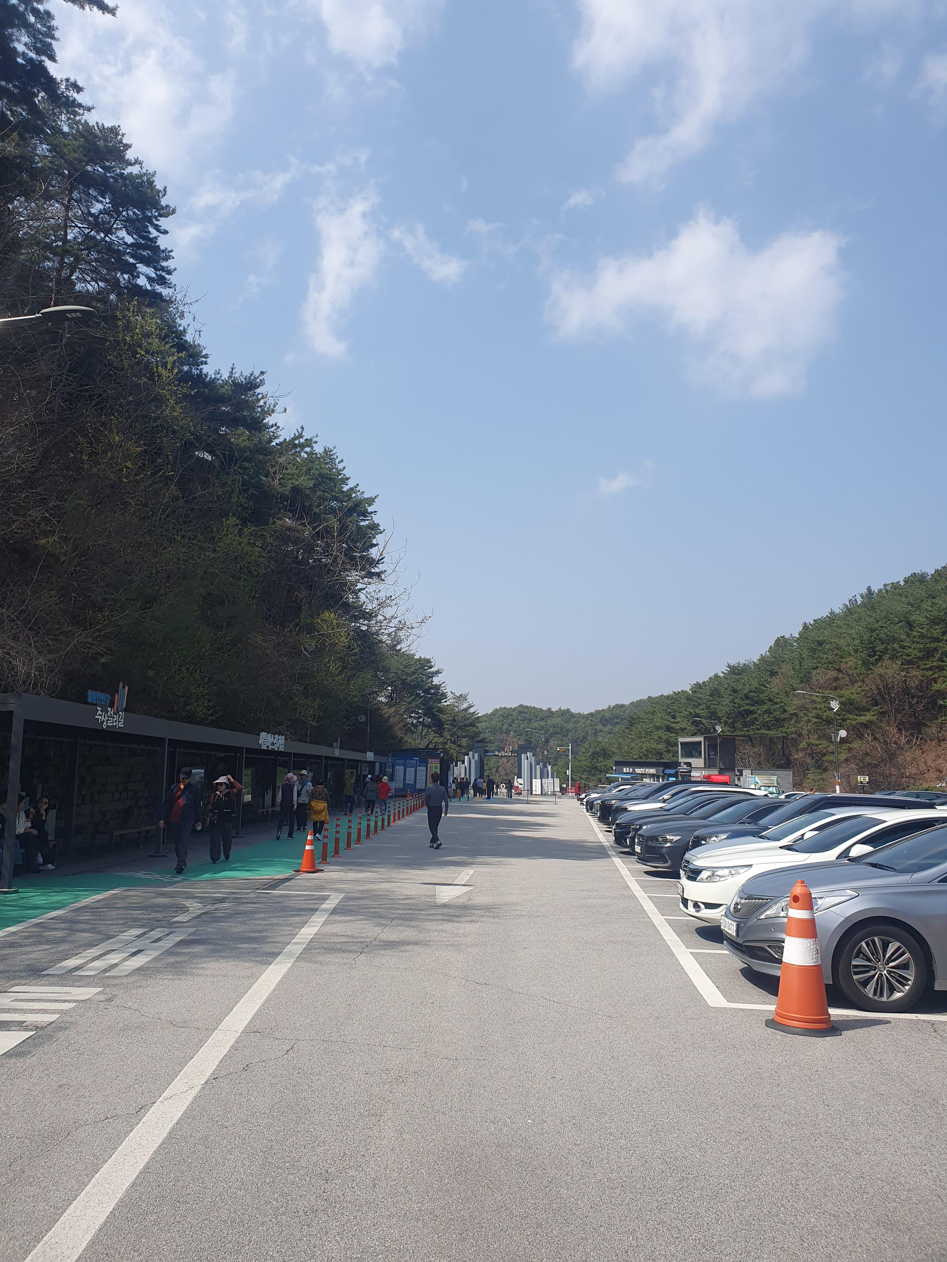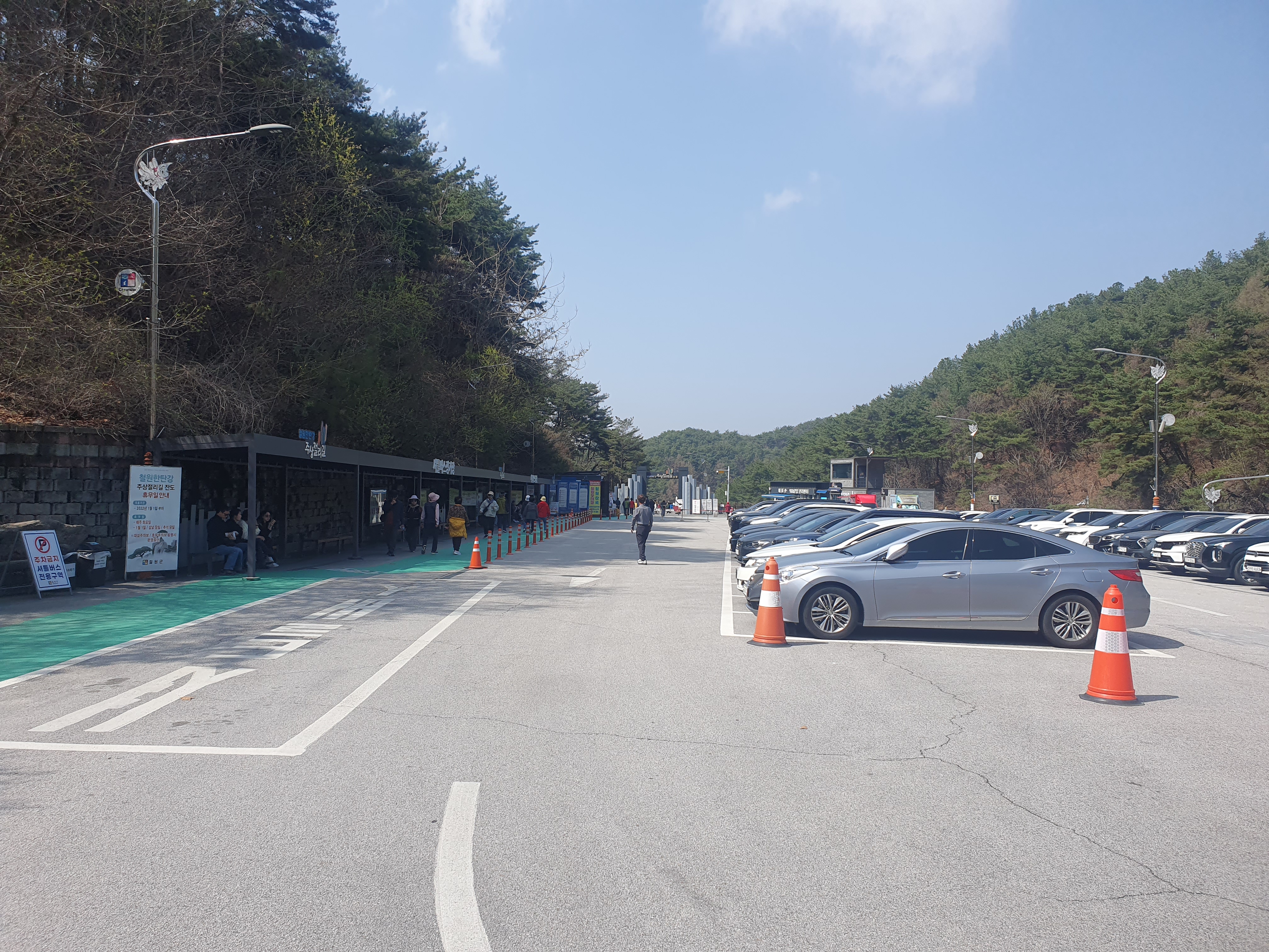 맑은 하늘 아래 차를 몰고 달려가니, 어느새 주차장 입구가 눈에 들어왔다. 이미 주차장은 차들로 가득 봄 나들이 인파가 이곳에도 어김없이 찾아와 있었다.